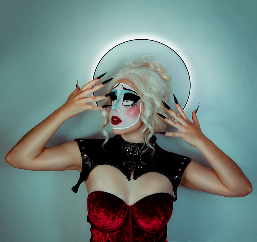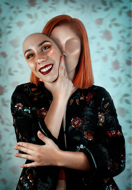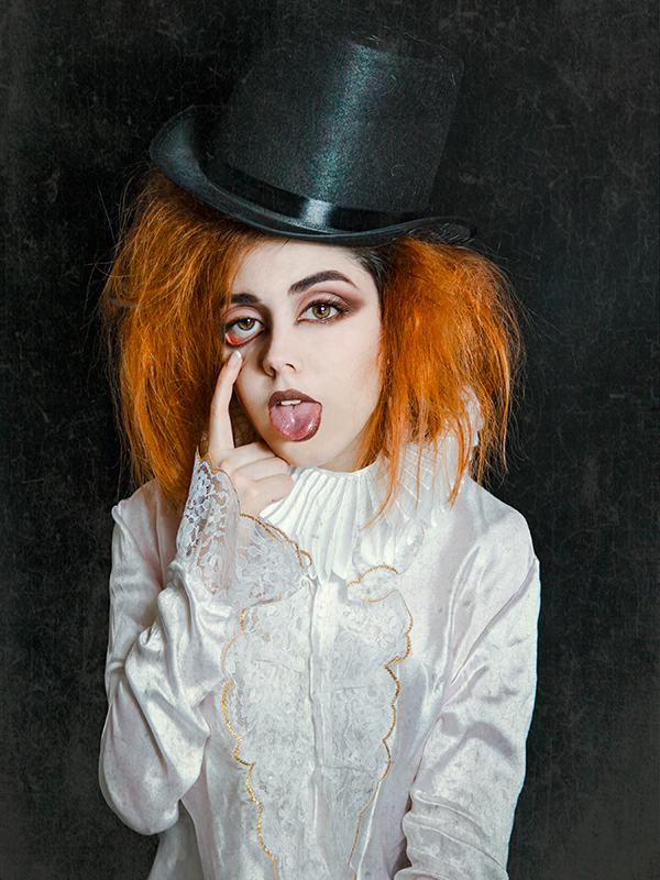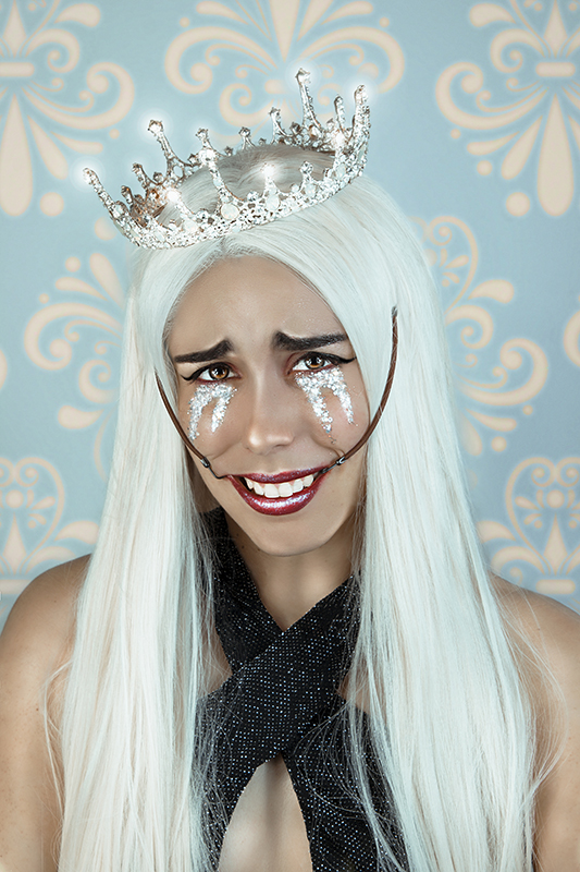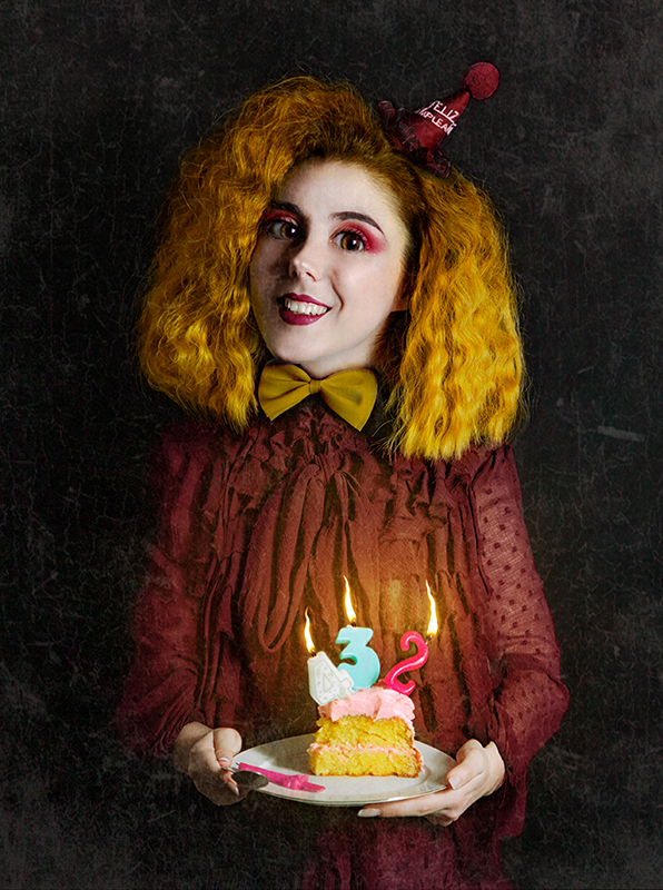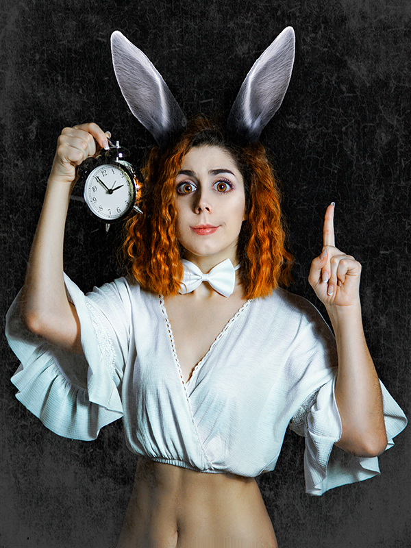 Puede ser Alicia, puede ser el conejo. Puede ser la máscara de su propia intimidad o una miss destronada por la vida. También puede ser el mago de un hechizo cualquiera, una paciente de hospital o un ángel caído entre nubes. La autora invoca con estos autorretratos todas sus facetas y las declara en permanente rebeldía.